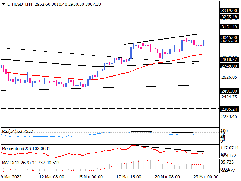 Ethereum bulls finally broke above the consolidation pattern on the 4-hour chart last Friday. Thursday trading session witnesses the rising moving averages support bullish momentum, particularly after the 50-EMA crossed over the 200-EMA. The price also appears to make higher tops and higher bottoms. Currently, the price of this cryptocurrency is fluctuating between the swing resistance of 3045 and the swing support of 2818. The outlook for the price would remain bullish as long as it remains above the EMAs. However, to maintain this uptrend, a clear breakout above 3045 must be seen, which has been a solid resistance level for over a month. Furthermore, this level coincides with the 127.2% Fibonacci extension of the previous downward swing, making it a critical level for the Ethereum coin.